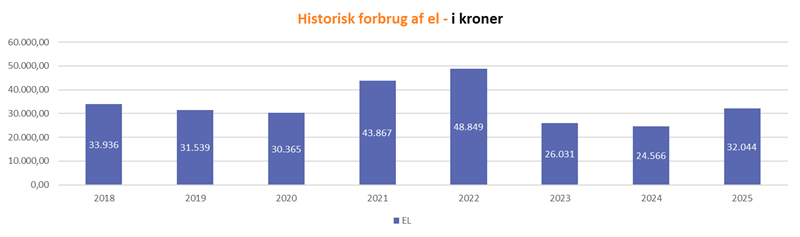 Det skyldes at elafgiften er fjernet for 2026 (og 2027) samt at der installeres et mere energivenligt ventilationsanlæg i foråret 2026.