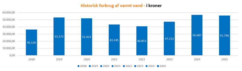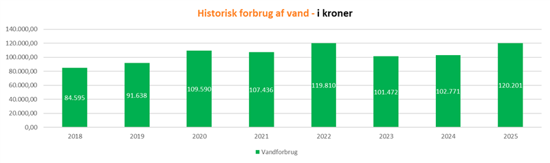 Forbruget i 2025 var 1.612,2 kubikmeter mod 1.612,1 kubikmeter i 2024. Forbruget var altså uændret.