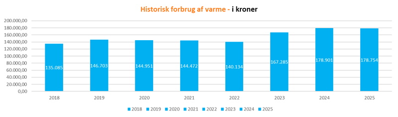 Nedenstående figurer viser de samlede årlige udgifter på varmeregningen siden 2018 i kroner.