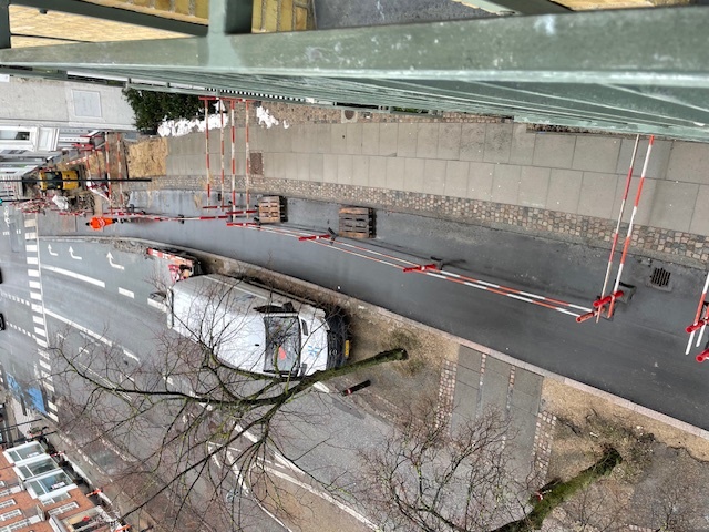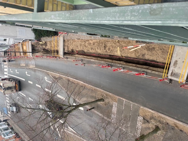 Der udføres arbejder foran vores ejendom. Det er ikke varslet. Det er "akut". Der er desværre problemer med et elkabel og elforsyning.